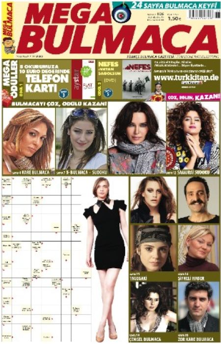Mega Bulmaca, Mega Ödüller veriyor. Ödüllü Bulmacayı çözün, 5 adet her biri 10,- Euro değerinde Ay Yıldız Telefon Kartı kazanın!.. Bu kampanyamizdan 5 okuyucumuz yararlanabilecek!.. Ikinci ödülümüz ise, bir dönemi anlatan 'NEFES' DVD filmi!.. Mega Bulmaca, her sayısında Mega ödüller kazandırıyor!..