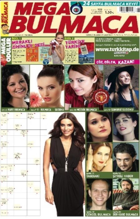 Mega Bulmaca'nın 122. Sayısı yeni bulmacalarla dopdolu!.. En yeni bulmacalar burada!.. Yine çok begeneceksiniz, yine çok seveceksiniz. Bu sayımızda Türk edebiyatının önemli yazarının eserini ödül olarak kazanabilirsiniz. Demet Altinyeleklioglu'ndan 'Nurbanu' kitabini, Cüneyt Arkin ve Mehmet Ali Erbil'in basrollerini paylastigi Dünyayi Kurtaran Adamin Oglu DVD filmi ödülümüz!.. Yapılan araştirmalara göre, zekanızı Geliştirmenin En Kolay Yolu, Bulmaca Çözmekten geçiyor!.. Uzmanlar diyor ki: 'Sık sık bulmaca çözme beyin için yapılacak en iyi egzersizdir... Beyninizi bulmaca çözerek çalıştırın ve diri tutun...' Bol bol okumak vebulmaca çözmek sinir sistemindeki hücrelerin yenilenmesini de sağlıyor!..